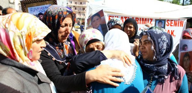 Adana'dan terör örgütü tarafından kaçırılan çocukları için Diyarbakır'a gelerek Büyükşehir Belediyesi, ardından Dağkapı Meydanı'nda 35 gündür oturma eylemi yapan anne Şerivan Aşan ve baba Tahir Aşan, örgüt tarafından bırakılan oğulları 15 yaşındaki Y. Aşan ile Diyarbakır'da bir araya geldi.